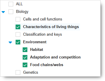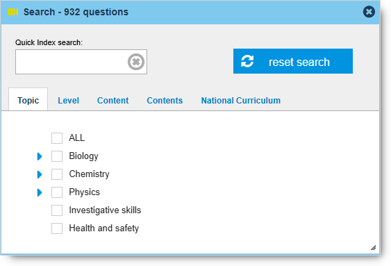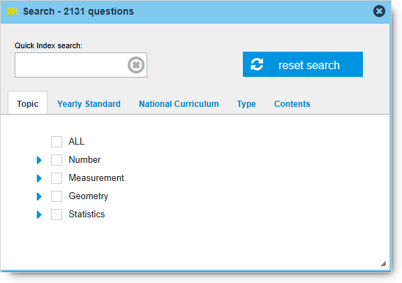 Use each tab to specify your search criteria. This narrows your search to the most appropriate questions.