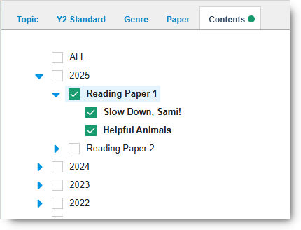 to start again.NB: The Contents tab will allow you to specify the source of the questions.