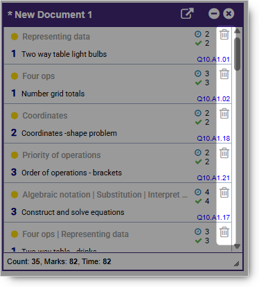You can drag & drop questions into a different order within the New Document window or delete by clicking the dustbin icon.